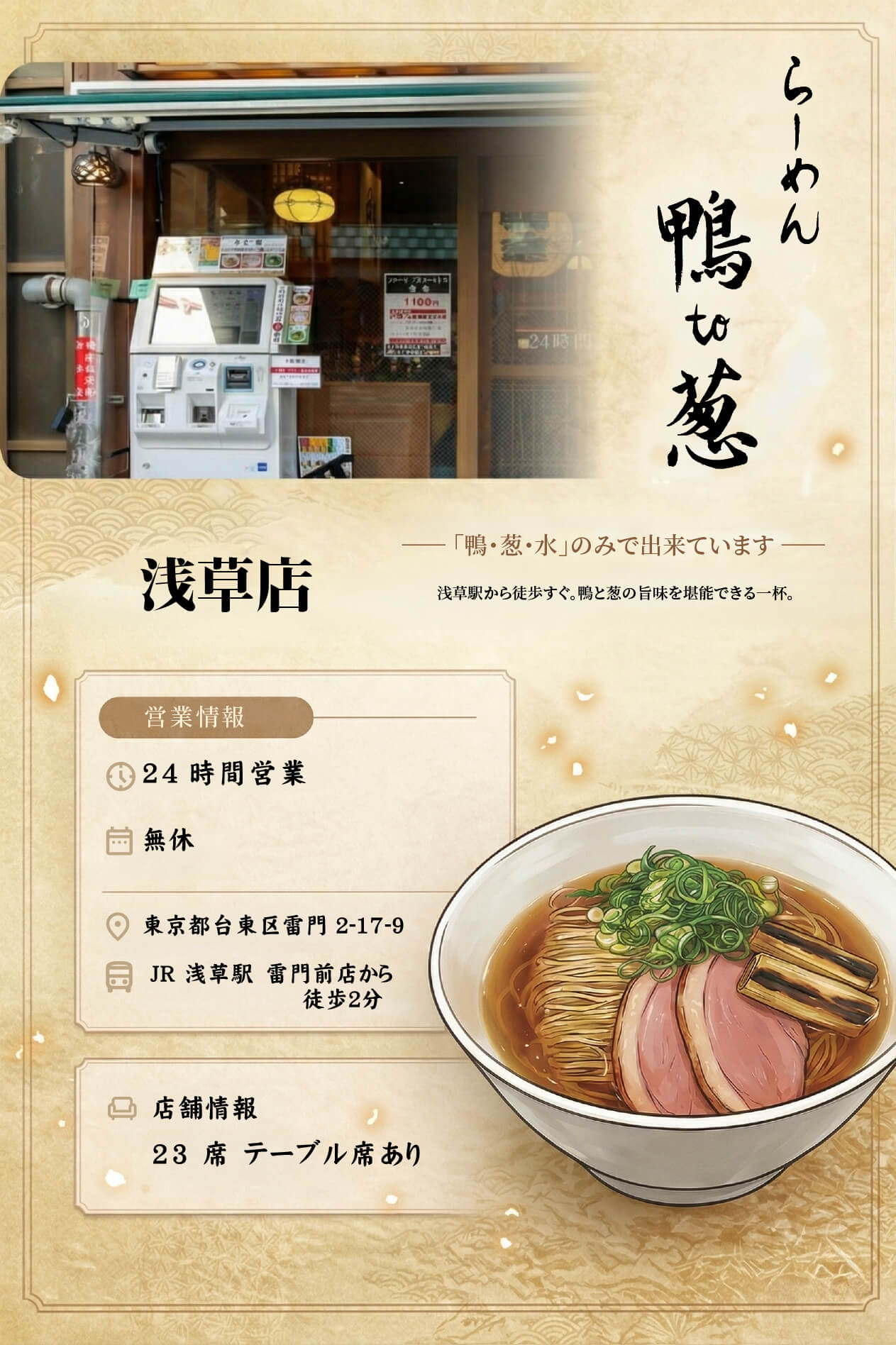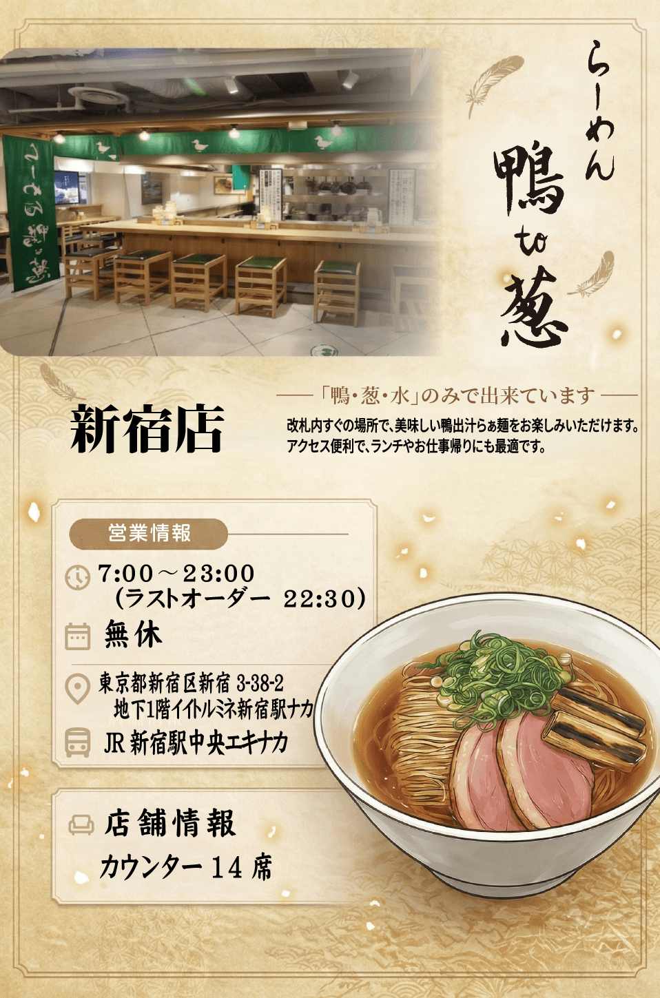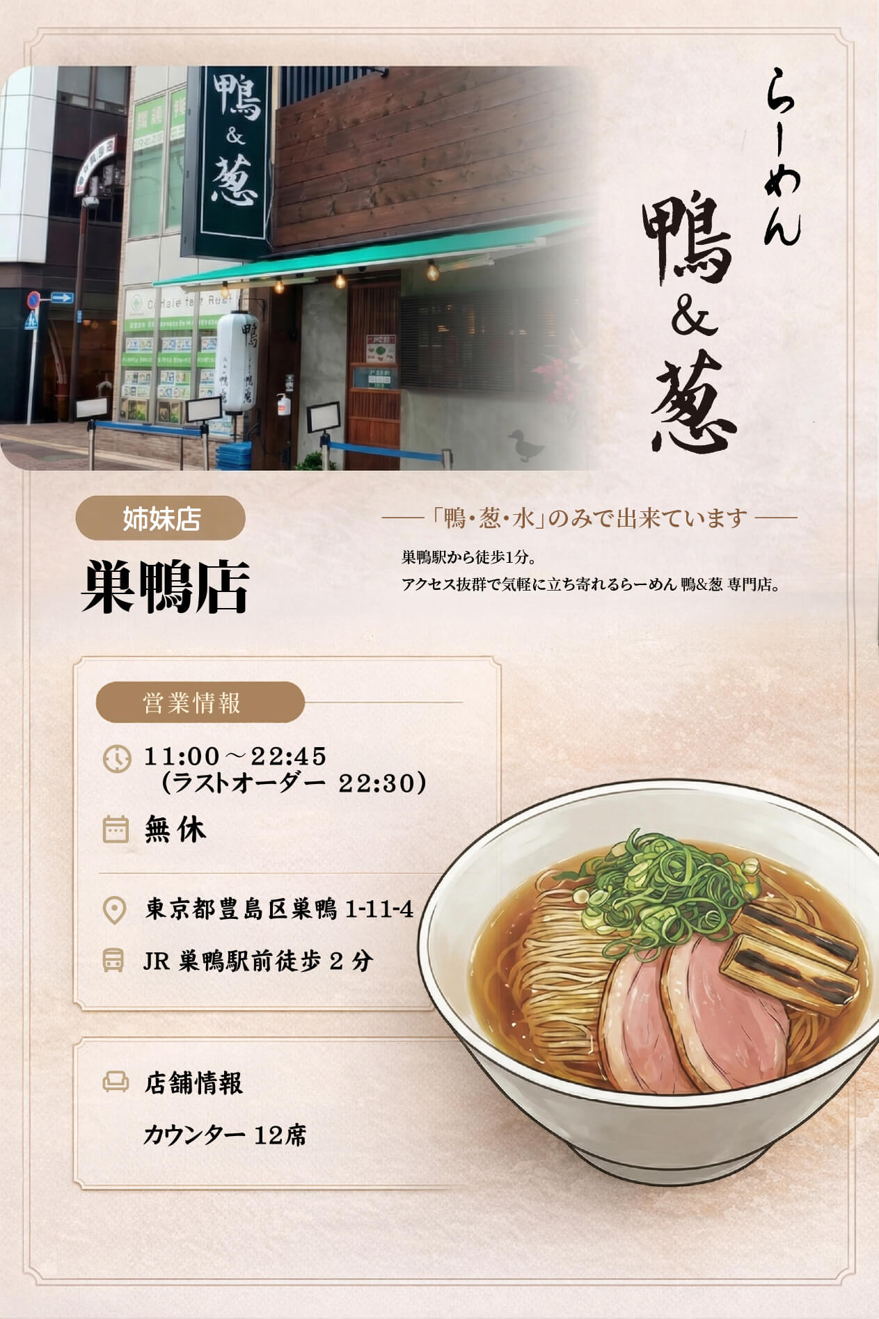 鴨・葱・水だけで作った出汁のらーめんです
