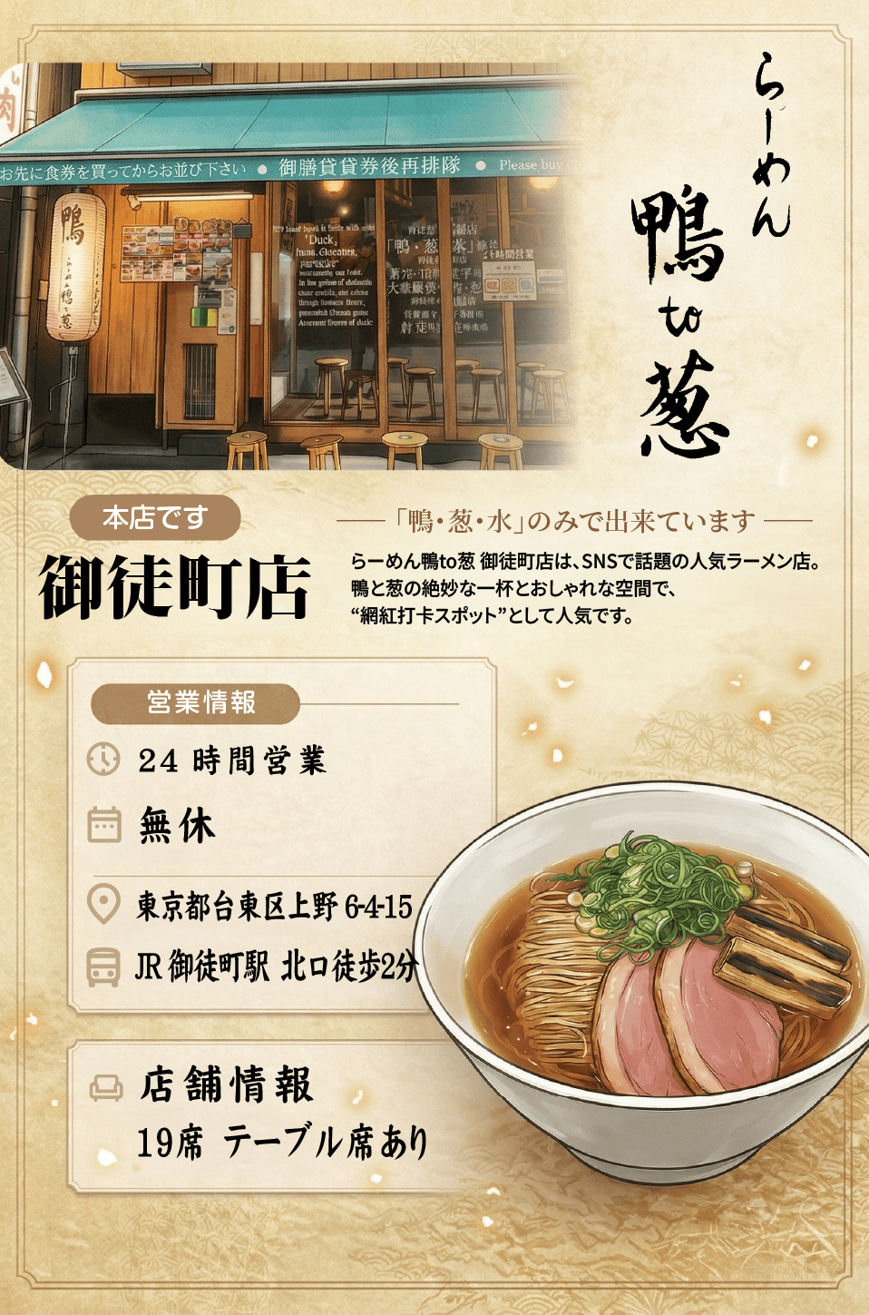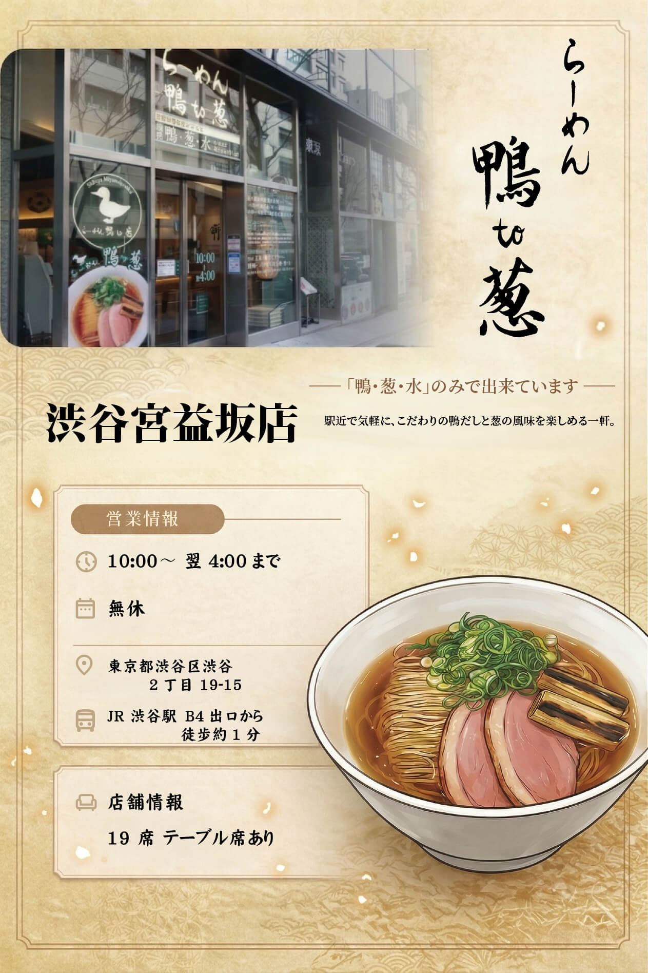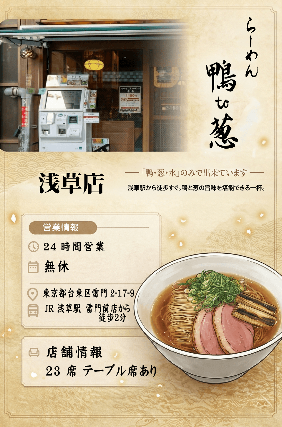 鴨・葱・水だけで作った出汁のらーめんです