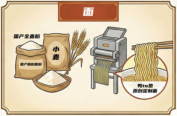 使用将国产全粒粉与小麦混合调配而成的“鴨to葱”原创特制面条。